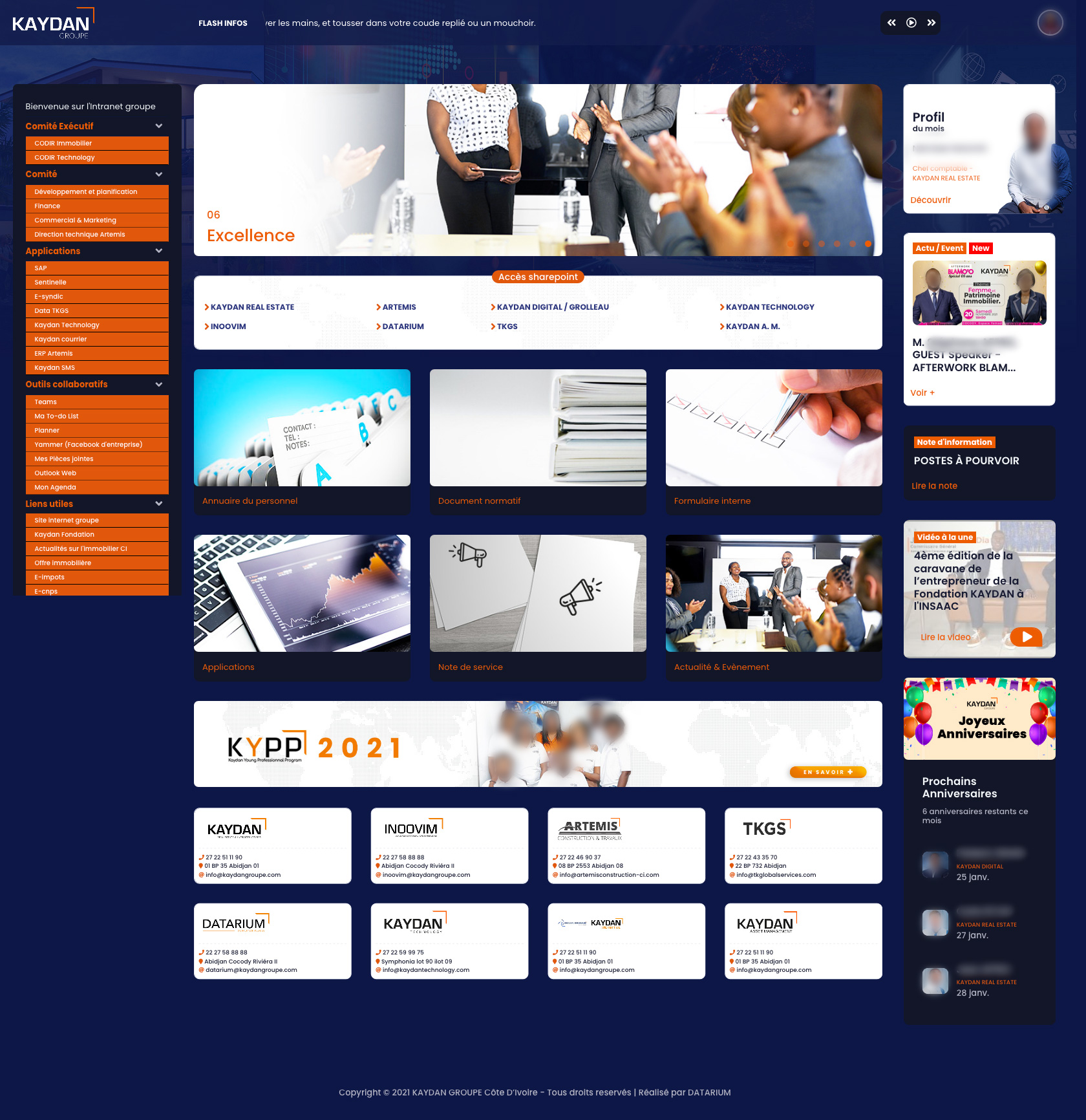 Plateforme groupe privée, centralisant toutes les ressources importantes dans lesquelles les employés peuvent trouver toutes les informations nécessaires à leur activité professionnelle quotidienne.